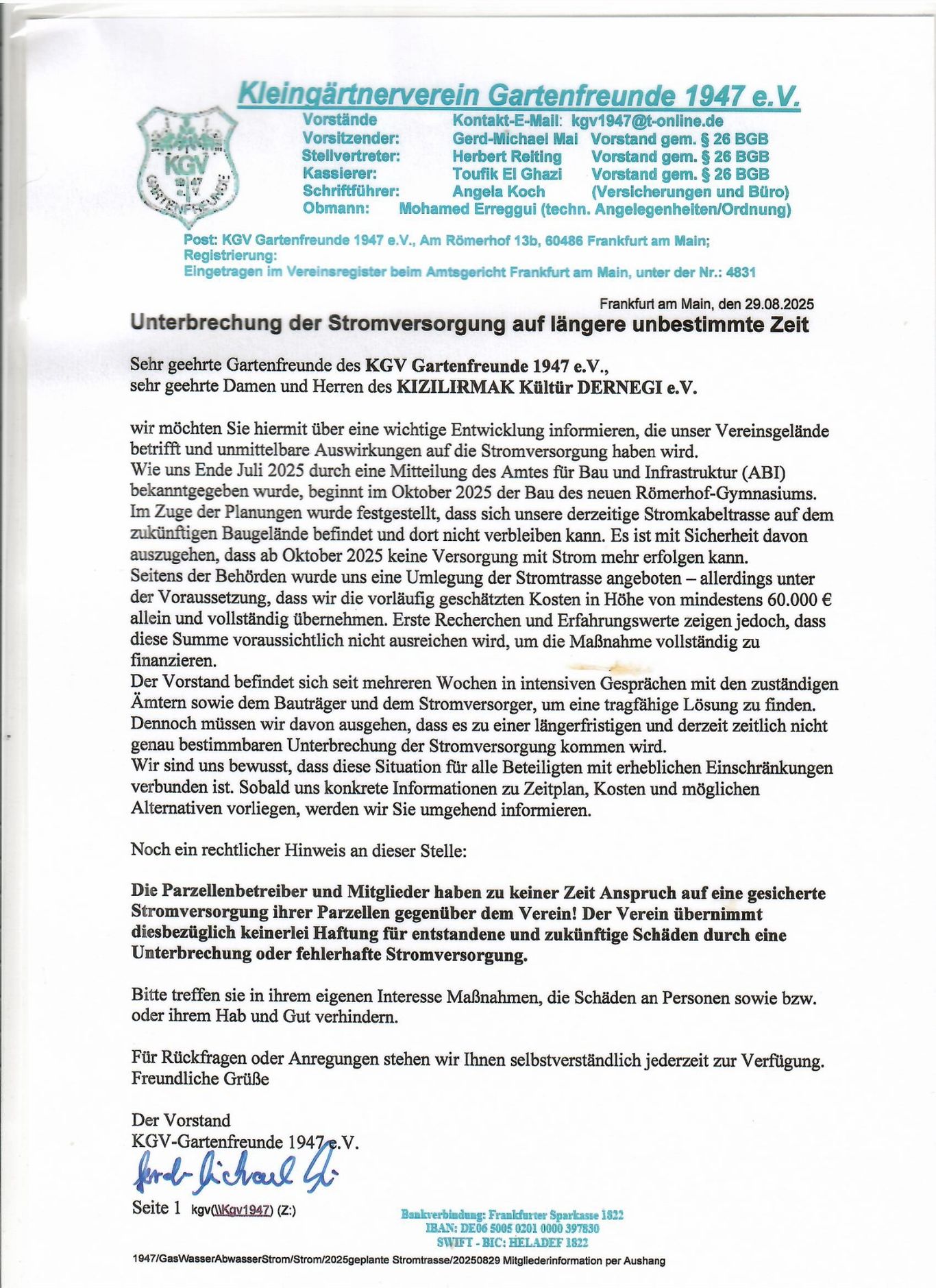 Die Einsatzbesprechung beginnt um 08:00 Uhr des jeweiligen Tages vor dem Vereinsbüro. Der Vorstand bittet alle Gartenfreunde um rege Beteiligung an der Gemeinschaftsarbeit. Für nicht geleistete Stunden sind 162 EUR in die Vereinskasse zu zahlen. Wir bitten alle, die an ihrem Termin verhindert sind, sich mindestens eine Woche vor dem Einsatztermin beim Obmann abzumelden und einen neuen Termin festzulegen - Danke!